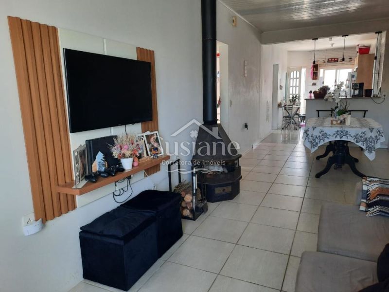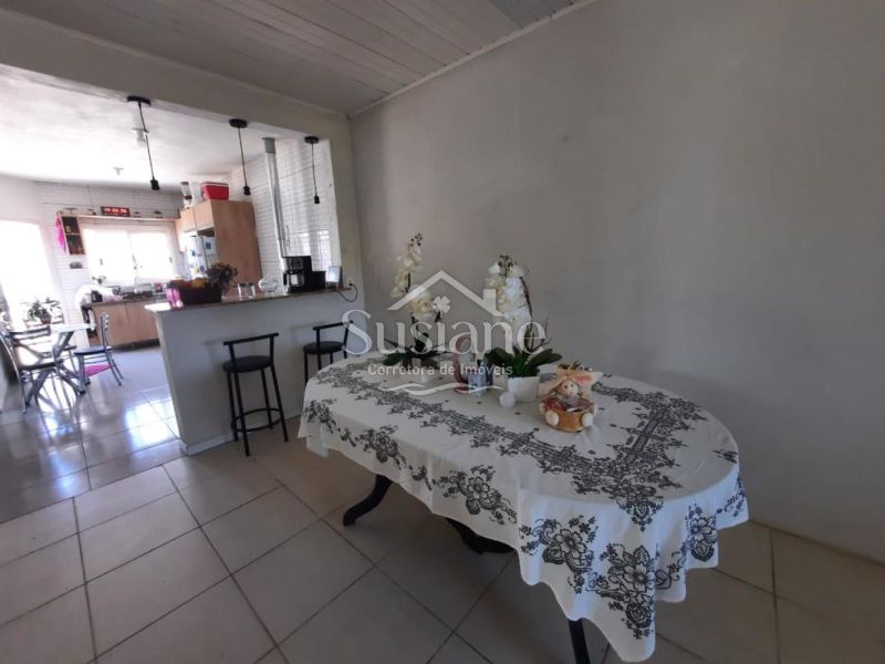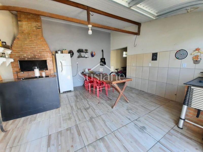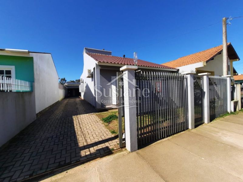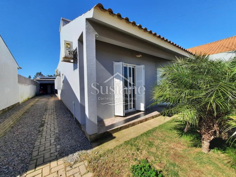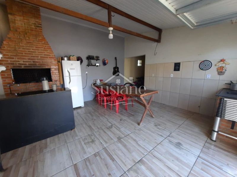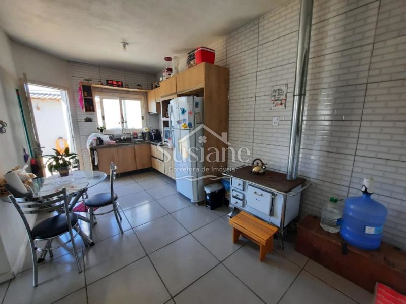 Linda casa de alvenaria, parte forro, parte laje, contendo três dormitórios amplos e ensolarados, sala estar com lareira, sala jantar, cozinha, banheiro social. Fundos tem um lindo salão de festas com churrasqueira, um dormitório, um banheiro, uma lavanderia. Pátio todo fechado e calçado. A casa possui placas de aquecimento solar. Terreno mede 10 x 27,80.