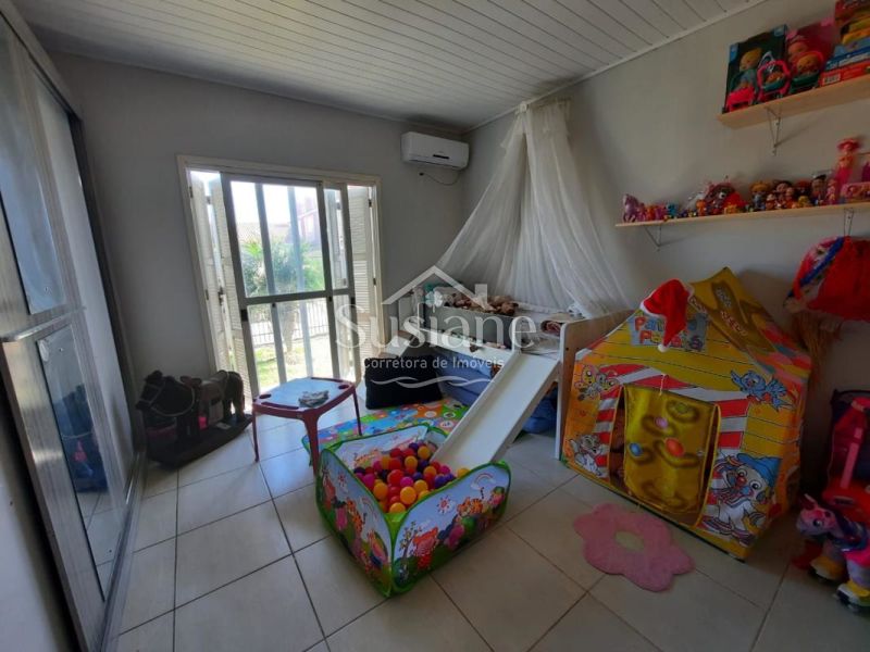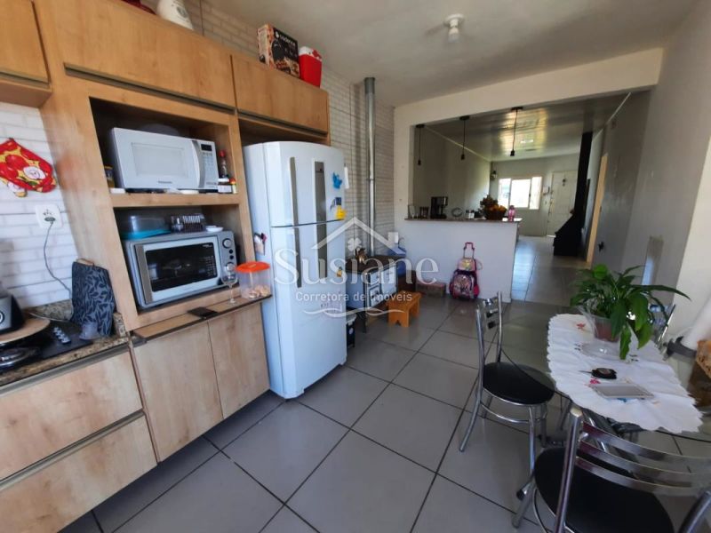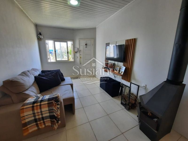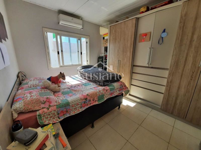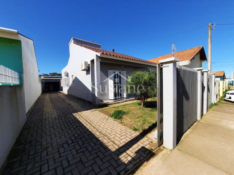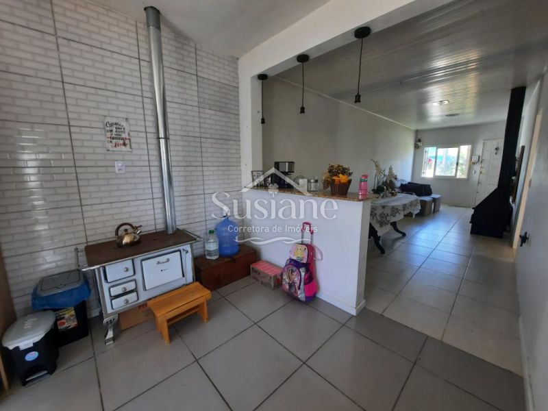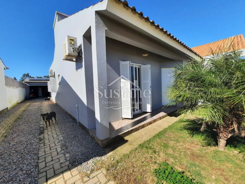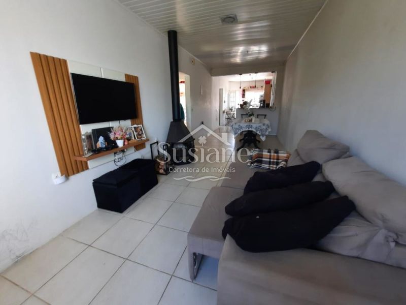 Linda casa de alvenaria, parte forro, parte laje, contendo três dormitórios amplos e ensolarados, sala estar com lareira, sala jantar, cozinha, banheiro social. Fundos tem um lindo salão de festas com churrasqueira, um dormitório, um banheiro, uma lavanderia. Pátio todo fechado e calçado. A casa possui placas de aquecimento solar. Terreno mede 10 x 27,80.