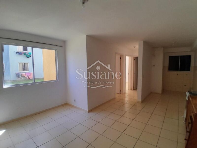 O Apartamento de 52m² conta com dois dormitórios, sala e cozinha conjugadas e banheiro.